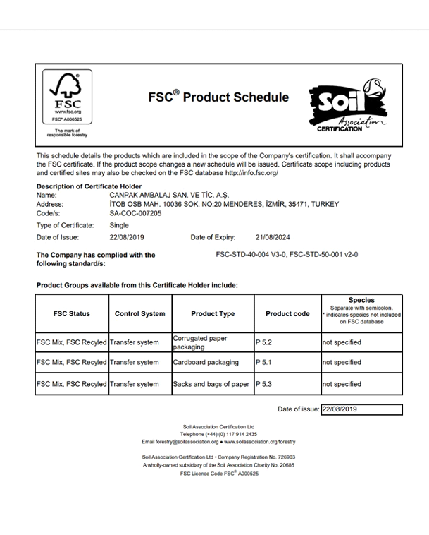 Güncel FSC sertifikası ile Canpak Ambalaj hem iç pazarda hem dış pazarda tanınmış önemli ofset baskılı kutu üreticilerinden biridir.